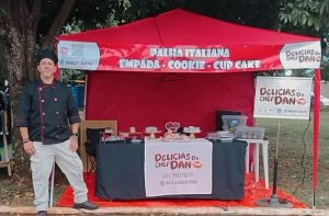 O cheiro de açúcar queimado na medida certa, o estalo da colher quebrando a crosta do crème brûlée e a fila que se forma antes mesmo da abertura oficial da feira. Quem passa pela banca do Chef Dan talvez não imagine que, há poucos meses, aquele mesmo homem enfrentava o desemprego, a depressão e a ameaça de ter a energia elétrica cortada em casa.