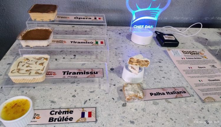O cheiro de açúcar queimado na medida certa, o estalo da colher quebrando a crosta do crème brûlée e a fila que se forma antes mesmo da abertura oficial da feira. Quem passa pela banca do Chef Dan talvez não imagine que, há poucos meses, aquele mesmo homem enfrentava o desemprego, a depressão e a ameaça de ter a energia elétrica cortada em casa.