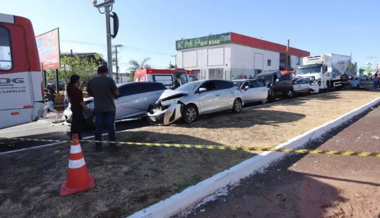 A colisão em sequência atingiu diferentes modelos, incluindo um caminhão, um BYD Dolphin, um Fiat Uno e uma caminhonete L200, além de outros automóveis que ainda não foram identificados. As imagens do acidente mostram os veículos amontoados, com danos expressivos nas carrocerias.