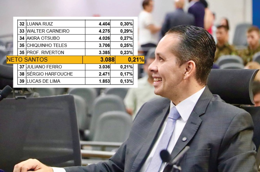 O resultado evidencia o crescimento da projeção política de Neto Santos, que aos 41 anos já ocupa papel de destaque na Câmara Municipal e vem se consolidando como representante de uma nova geração de lideranças. Seu nome aparece ao lado de deputados federais e estaduais de longa trajetória, o que reforça sua visibilidade e potencial para a eleição de 2026.