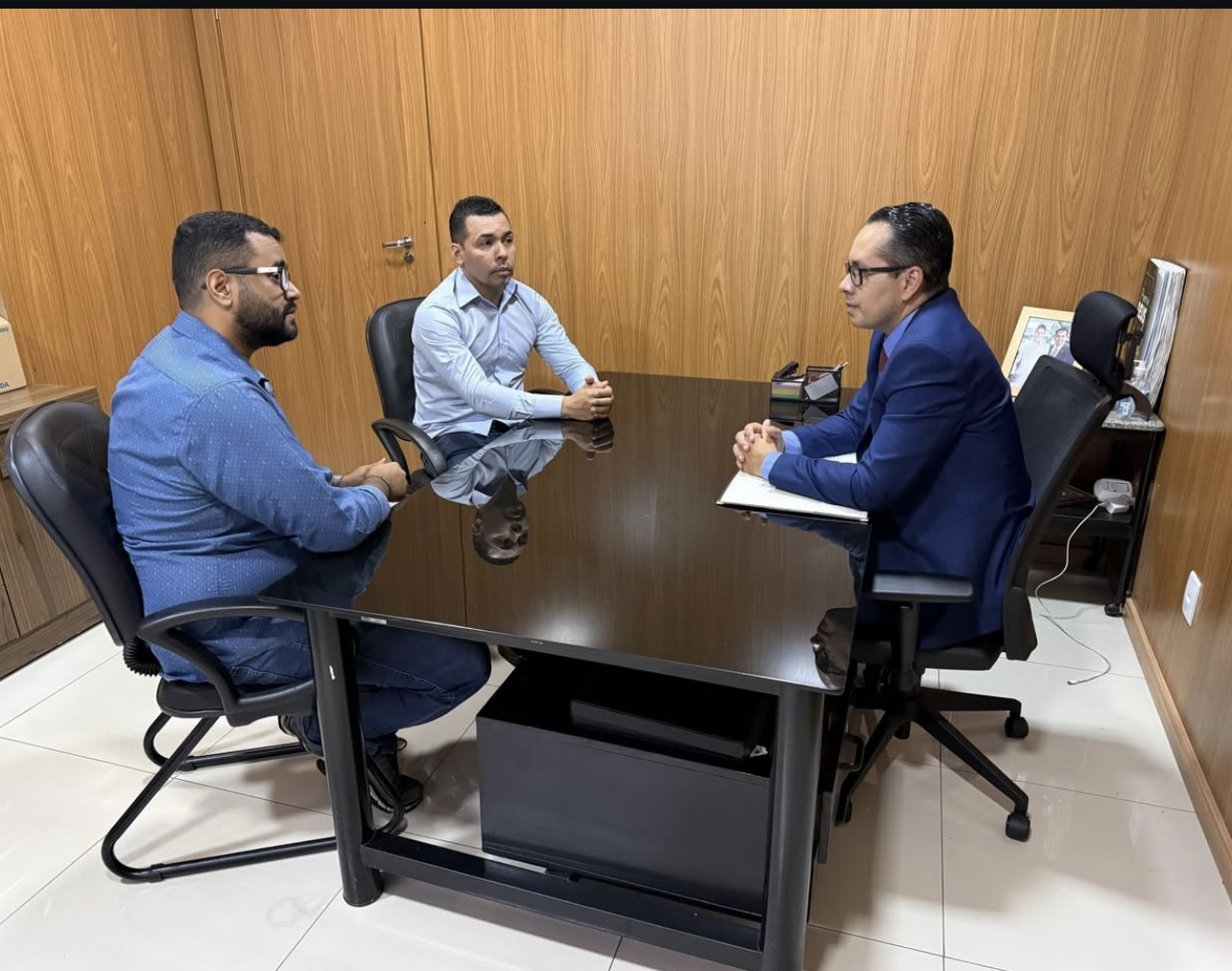 O vereador Neto Santos recebeu em seu gabinete Thiago Ramiro, o Bispo Agnaldo Simões e Luís, em um encontro voltado à discussão de demandas importantes para a população do município. A reunião teve como objetivo ouvir reivindicações, dialogar sobre necessidades locais e buscar caminhos para soluções efetivas.